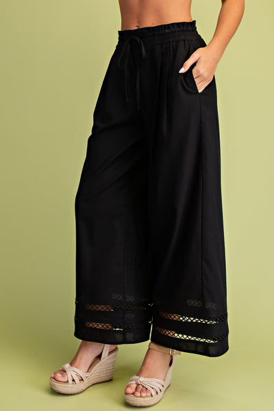 Linen Relaxed Fit Pants with Decorative Trim Details